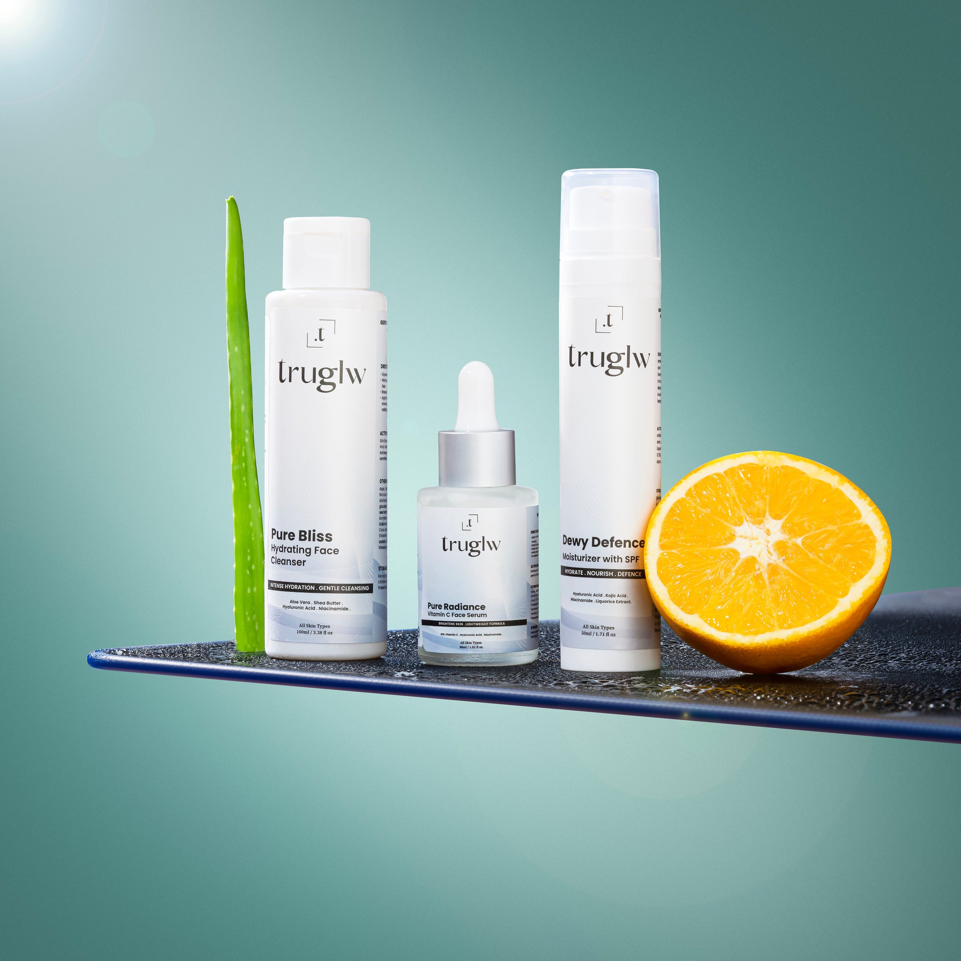 I’ve been using Truglw skincare kit products for sometime now, and I’m absolutely thrilled with the results! The Glow Trio routine is simple, gentle, and has significantly improved my skin’s texture, hydration, and overall health. My skin feels balanced, soft, and glowing every day.